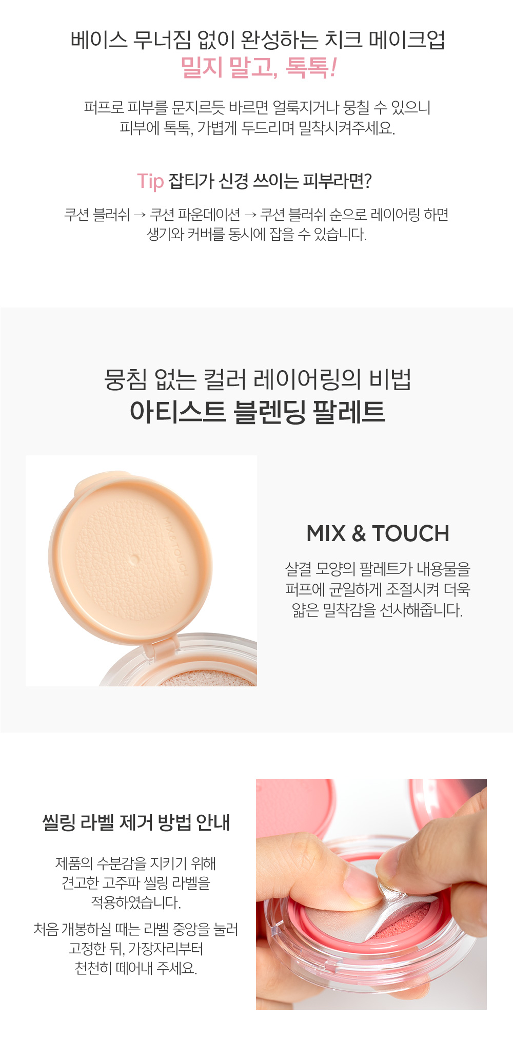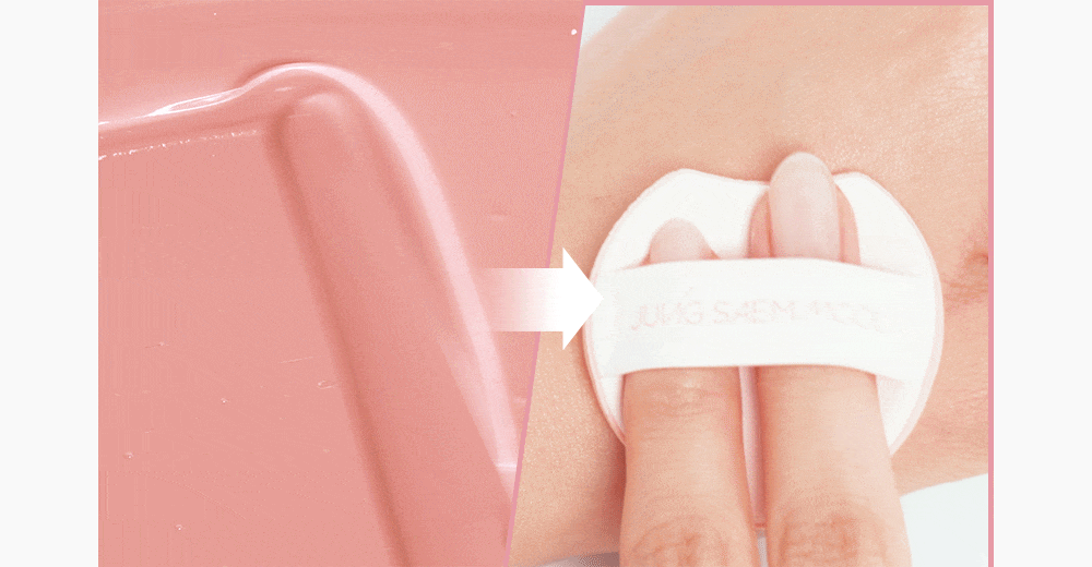 퍼프에 내용물 적당량을 취한 후, 얼굴에 얇게 펴 바르고 가볍게 두드려 펴 발라줍니다.