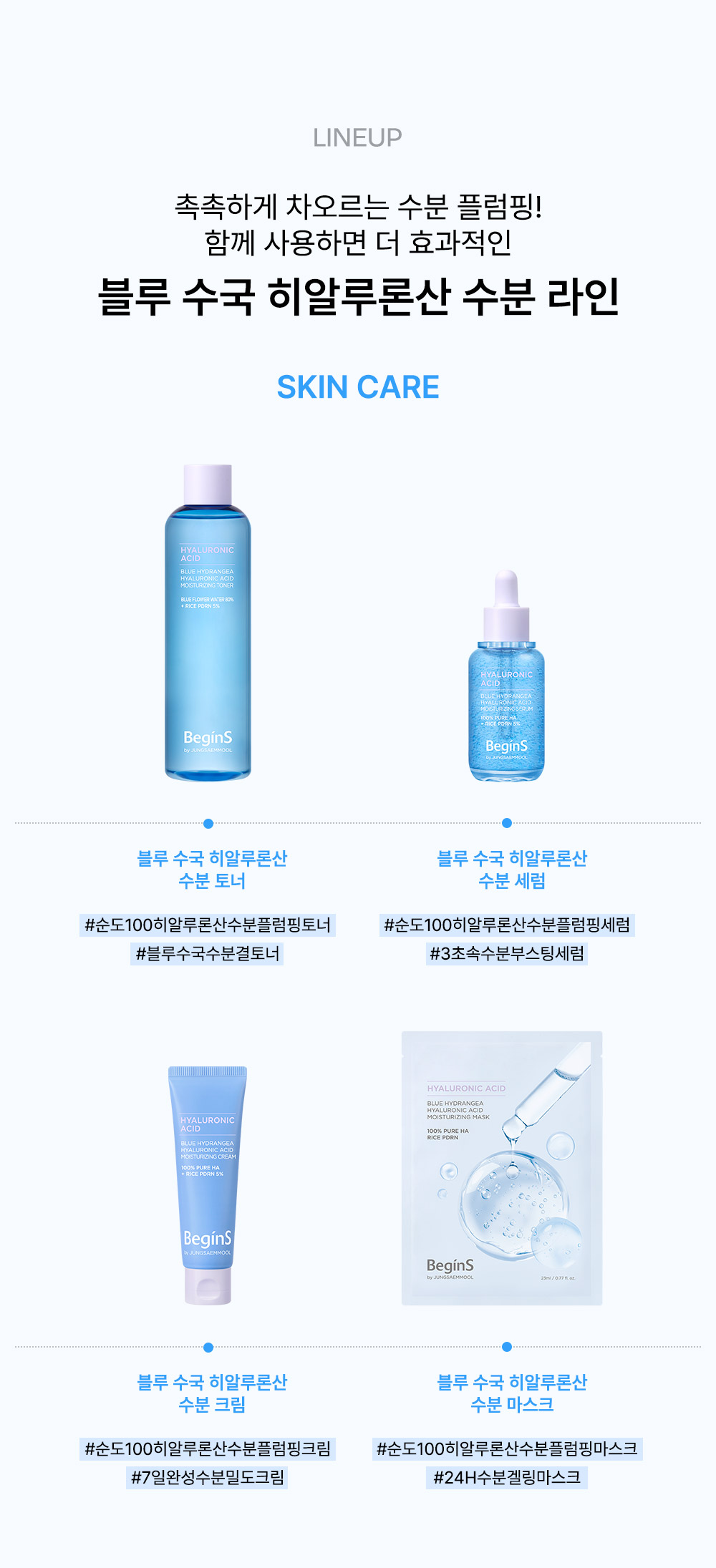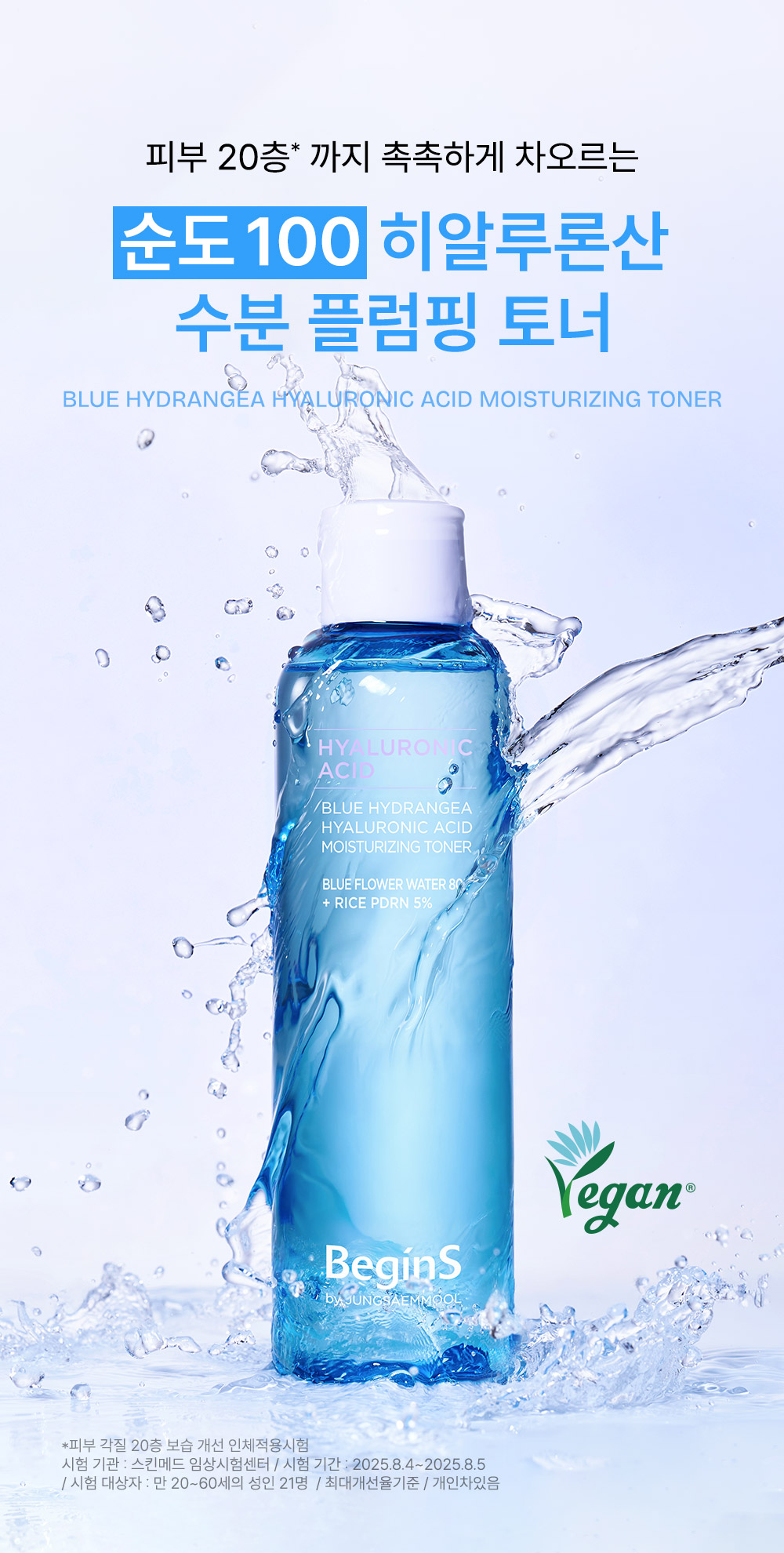 BeginS by JUNGSAEMMOOL Blue Hydrangea Hyaluronic Acid Moisturizing Toner피부 속 20층까지 흡수되어 촉촉하게 차오르는 수분 플럼핑 토너 |