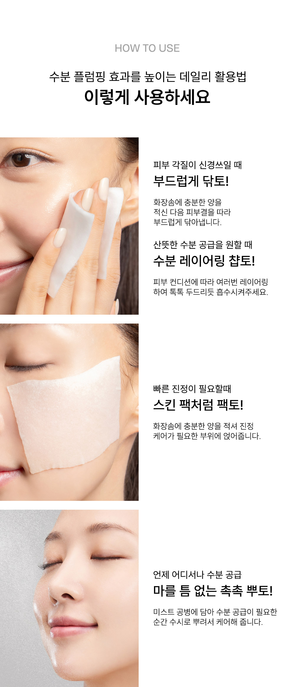 - 세안 후 적당량을 취해 얼굴에 두드리며 흡수시켜 줍니다.