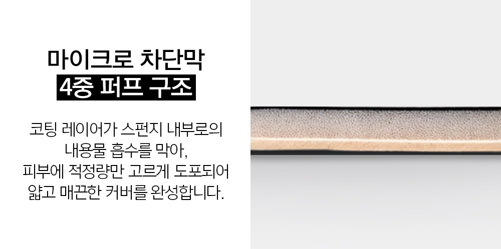 퍼프로 스폰지를 눌러 적당량의 내용물을 취해 얼굴에 골고루 펴 발라줍니다.