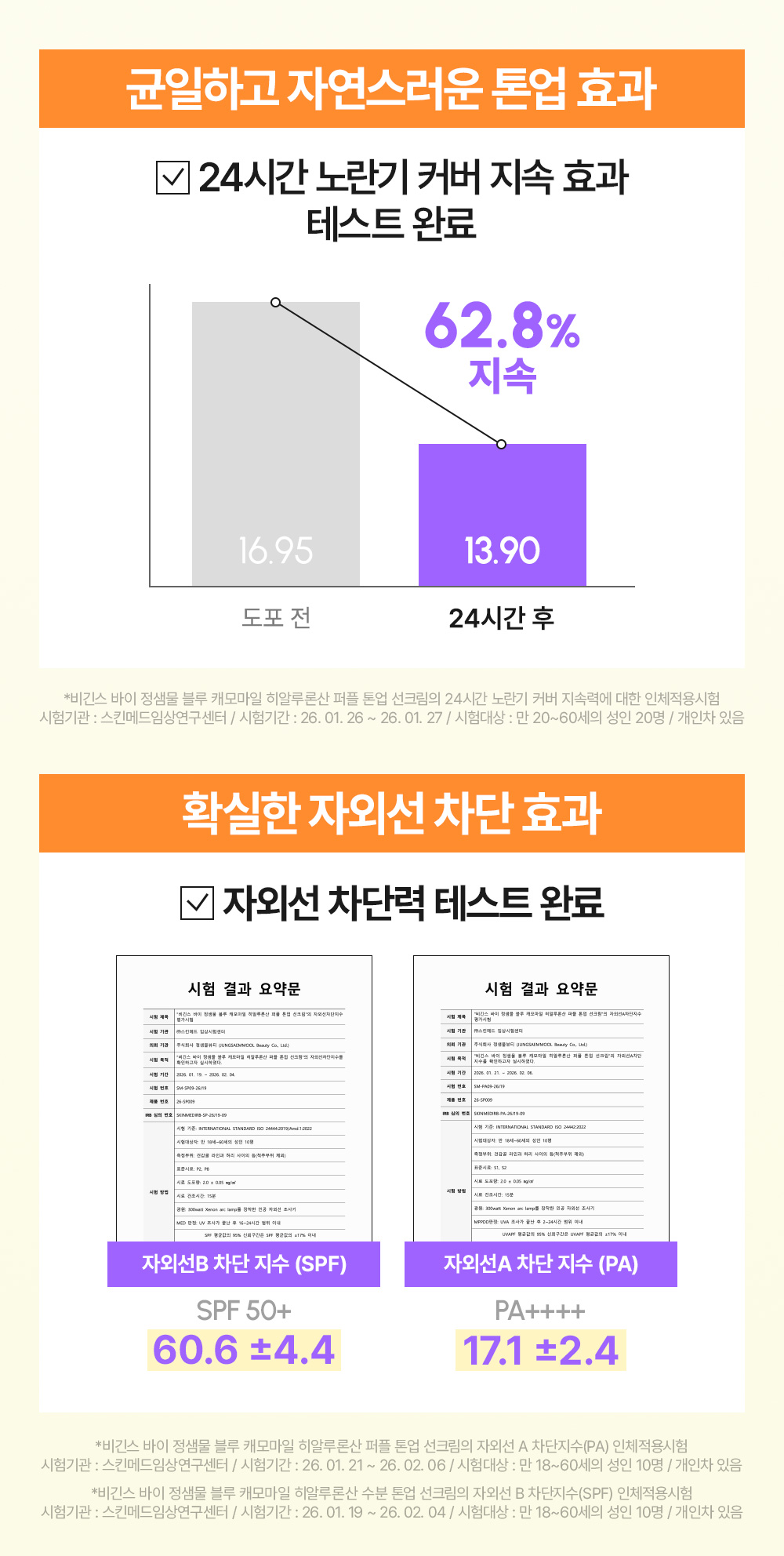 | 식품의약품안전처심사 필 문구 | 미백, 주름개선, 자외선 차단(SPF50+ / PA++++) 기능성 화장품 |